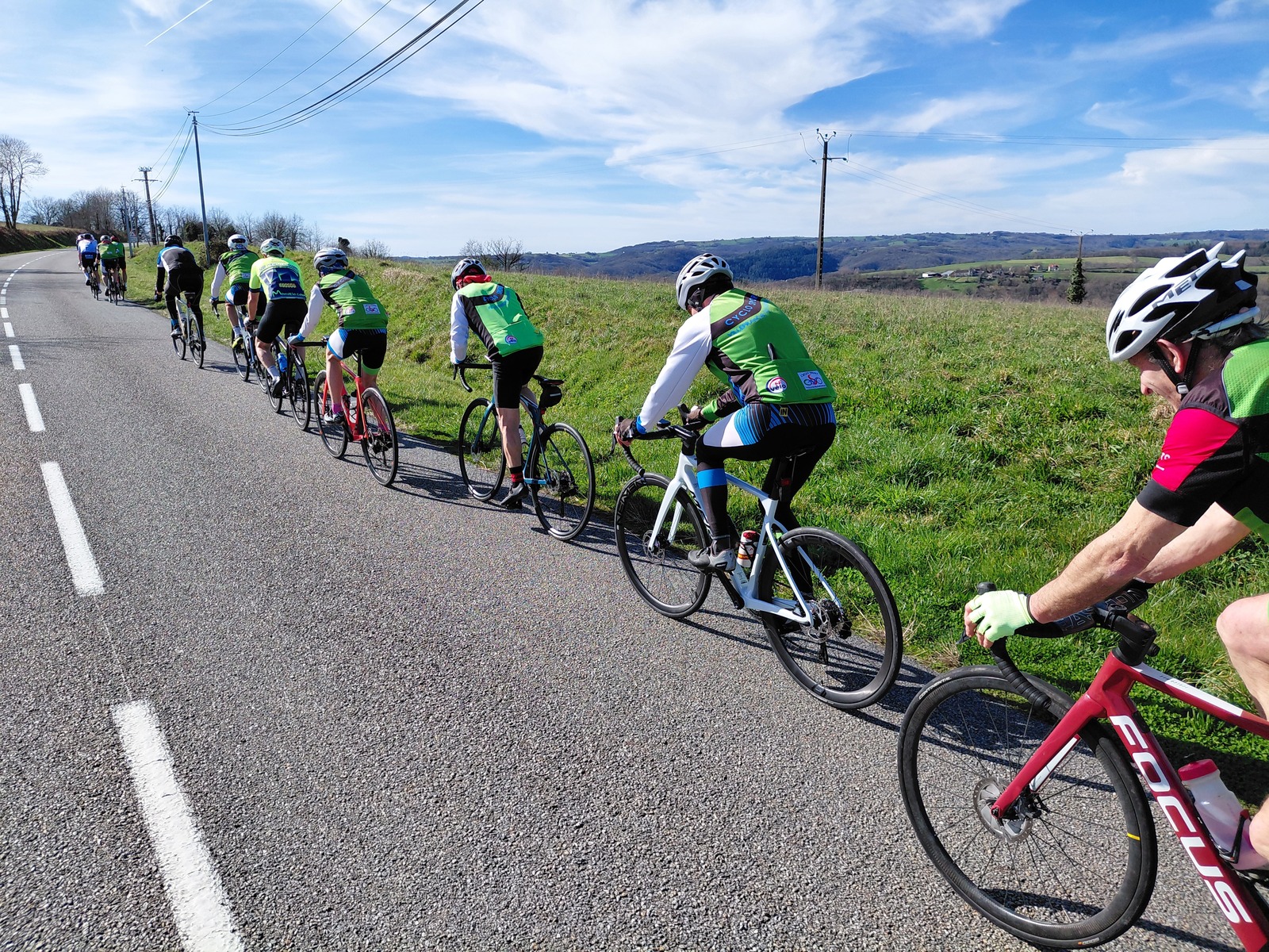 C'était un vrai régal cette virée de 85km ,sous un beau soleil malgré prés de 1200m de dénivelé. Une quinzaine de cyclos ont apprécié cette sortie sur ce beau parcours même si certains en avait plein les pattes…